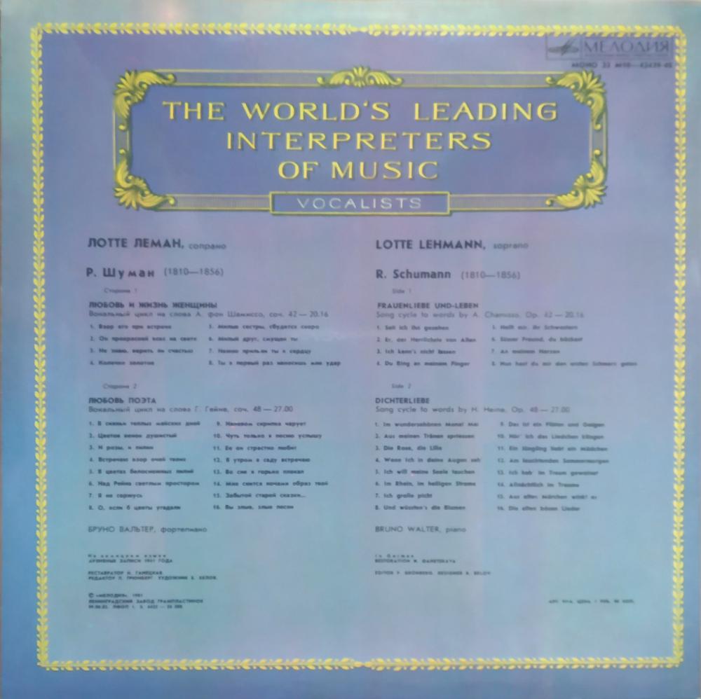 Лотте Леман. Сопрано. Из Сокровищницы Мирового Исполнительского Искусства. Вокалисты (LP)