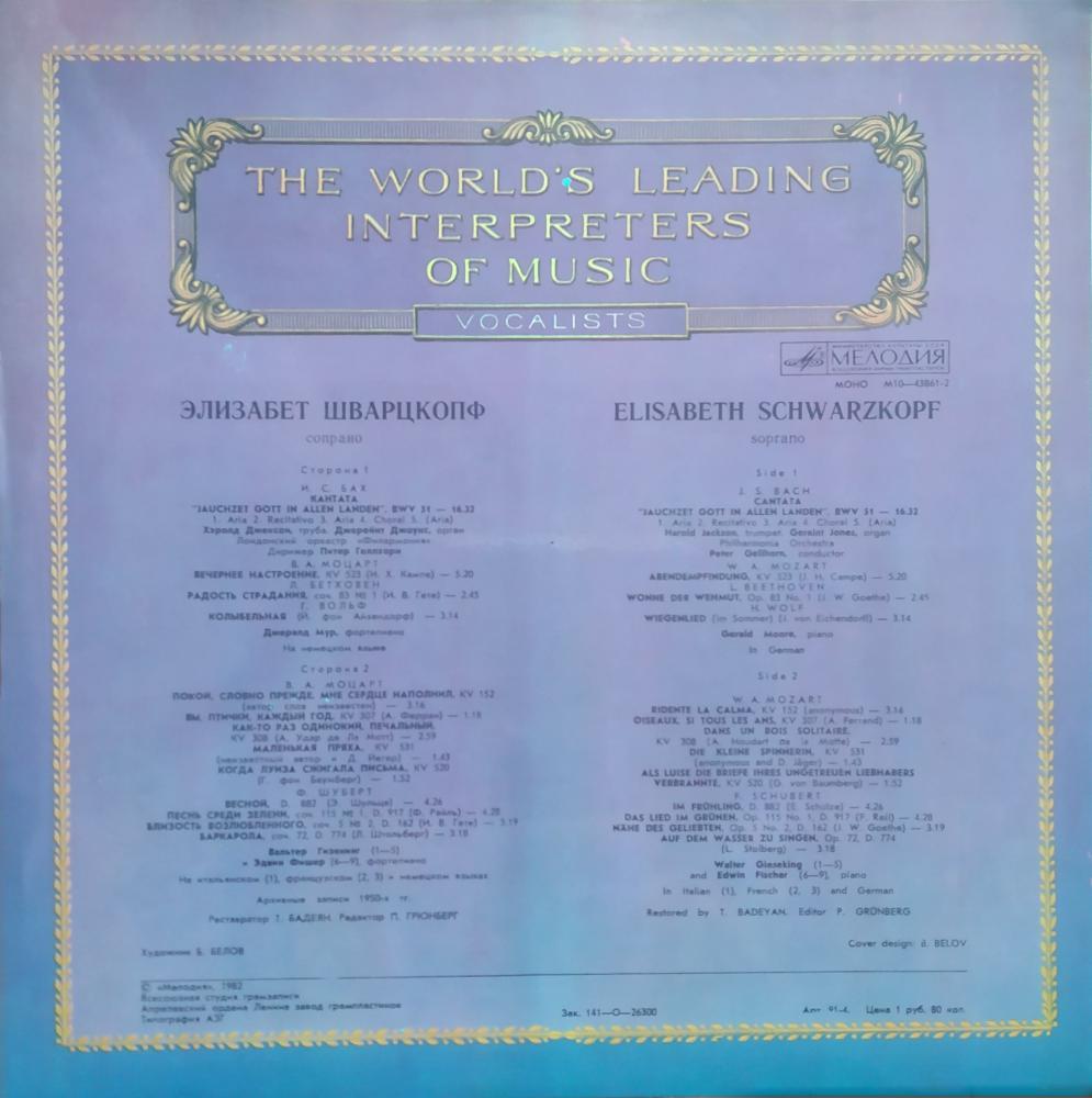 Элизабет Шварцкопф. Сопрано. Из Сокровищницы Мирового Исполнительского Искусства. Вокалисты (LP)