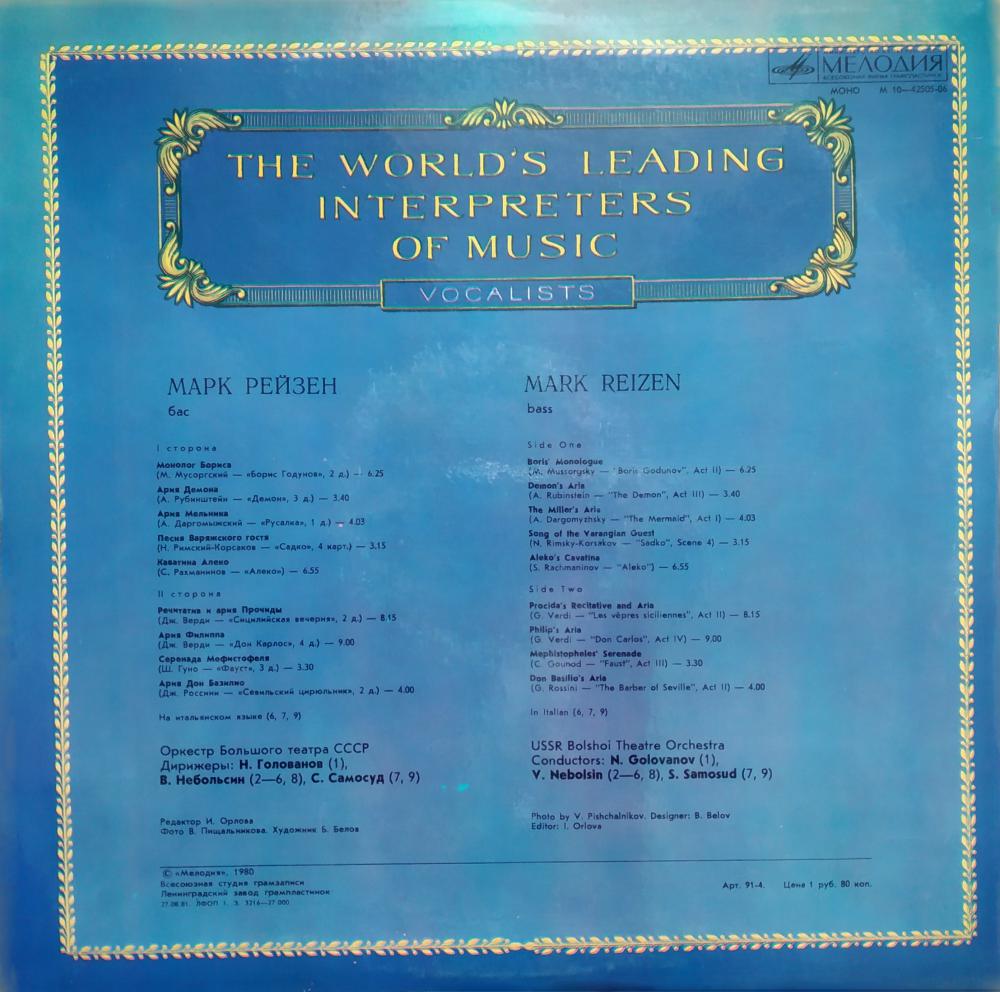 Марк Рейзен. Бас. Из сокровищницы мирового исполнительского искусства. Вокалисты. (LP)