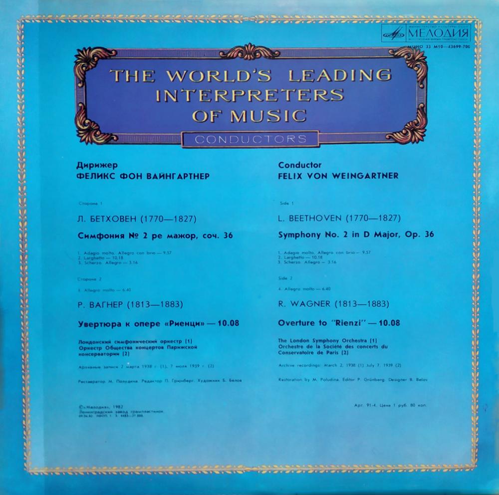 Феликс фон Вайнгартнер. Дирижер. Из сокровищницы мирового исполнительского искусства. (LP)
