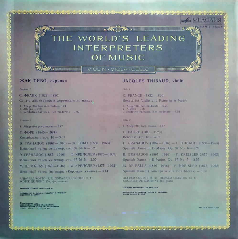 Жак Тибо. Скрипка. Из сокровищницы мирового исполнительского искусства. Скрипка, альт, виолончель. (LP)