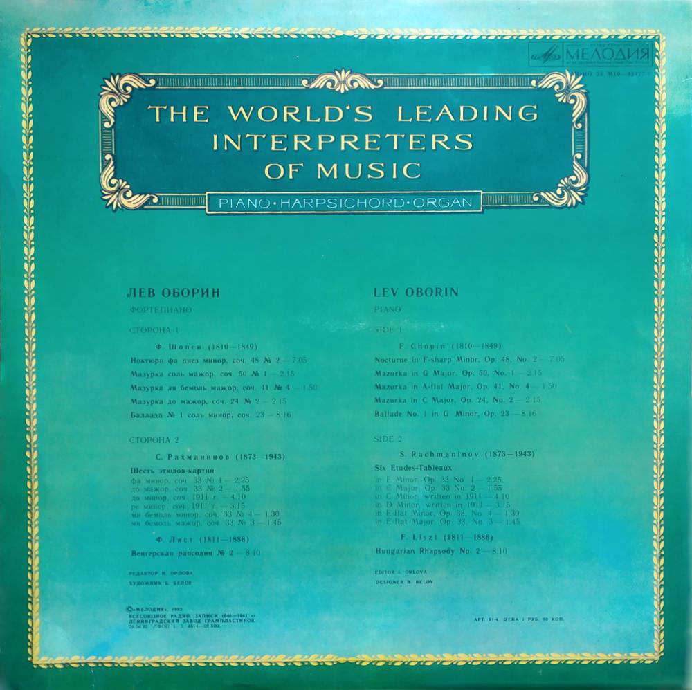 Лев Оборин. Фортепиано. Из сокровищницы мирового исполнительского искусства. Фортепиано, клавесин, орган. (LP)