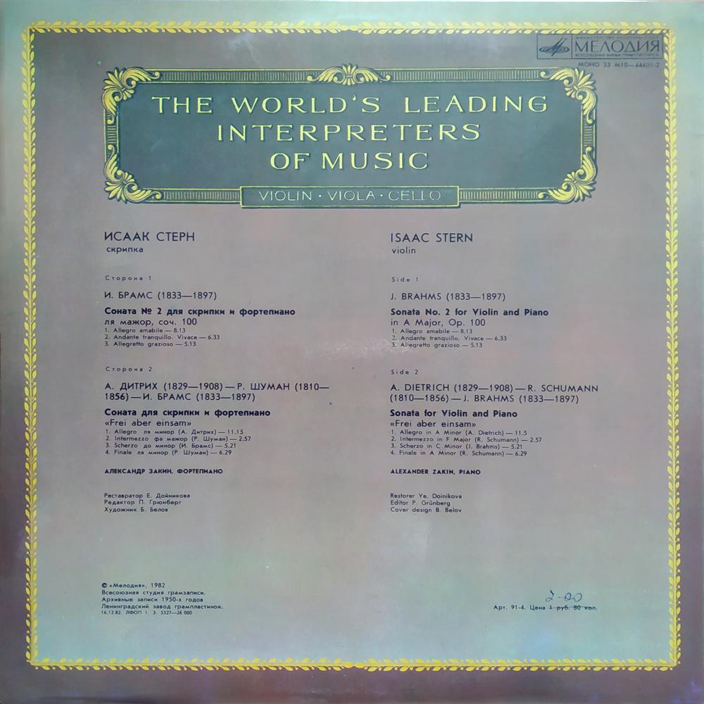 Исаак Стерн. Скрипка. Из сокровищницы мирового исполнительского искусства. Скрипка, альт, виолончель. (LP)