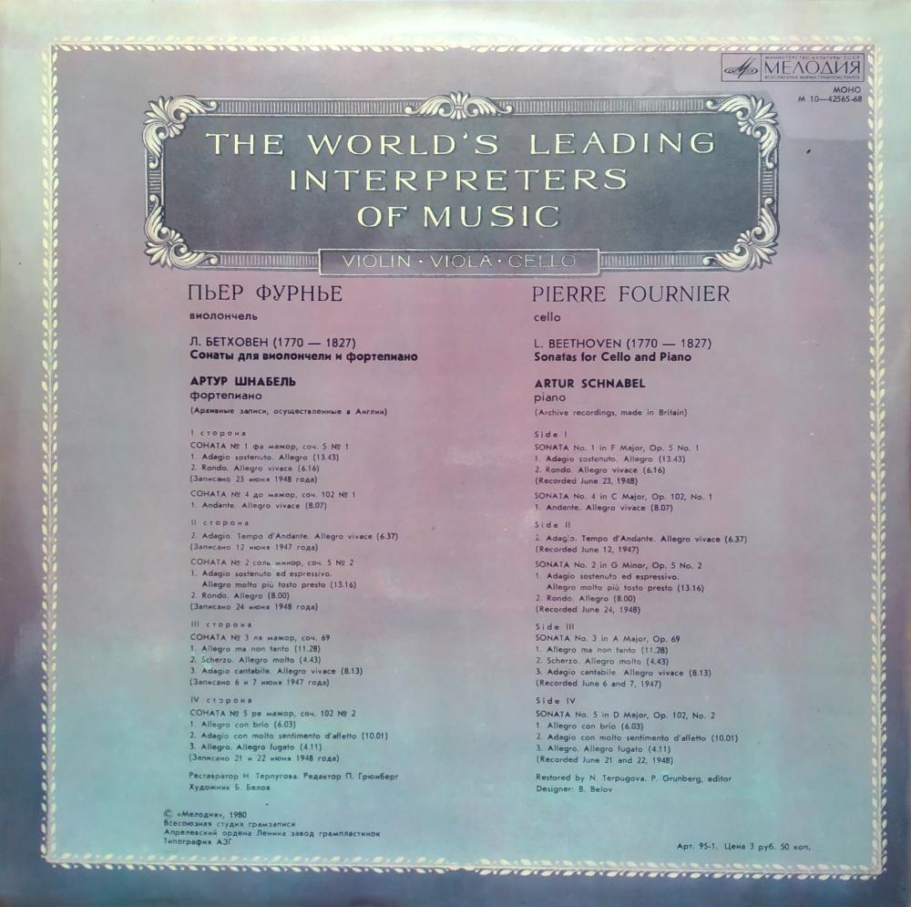 Пьер Фурнье. Виолончель. Из сокровищницы мирового исполнительского искусства. Скрипка, альт, виолончеоль. (2*LP)